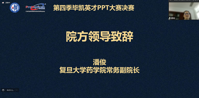 活动于当天下午两点正式开始。上海毕凯医药科技有限公司总经理、竞技宝 97级校友杨景瑞,竞技宝 常务副院长潘俊,竞技宝 党委副书记王宁宁出席本次活动。同时,参与活动的还有毕凯医药的工作人员和竞技宝 的同学们。竞技宝 2021级直博生包彦宁主持。潘俊常务副院长为大赛致辞,潘老师首先肯定了竞技宝 与毕凯医药科技有限公司合作的重要意义,向杨景瑞校友和毕凯医药科技有限公司对竞技宝 人才培养工作的支持和在疫情期间对同学们的关心关爱表达了感谢。评委会主席唐音老师紧接着介绍了本次大赛的赛制和决赛规则。