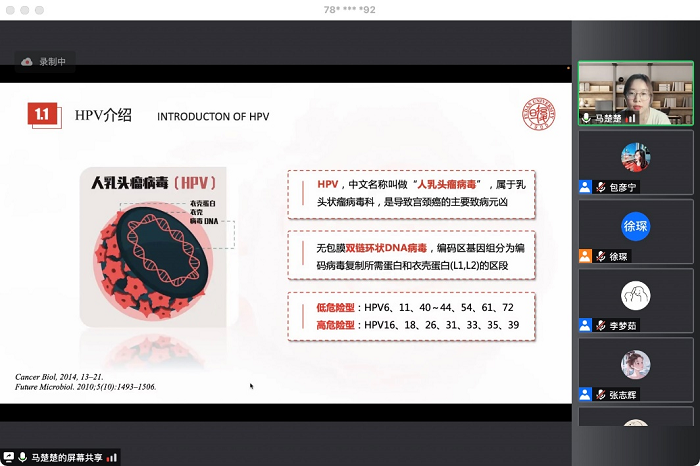 随后比赛开始。入选决赛的10位同学围绕“HPV疫苗的研发进展及品质”这一主题依次展示、讲解自己精心设计的PPT。每位参赛选手发挥自身优势,展示内容丰富准确、讲解过程生动稳健,给在座的评委、老师和同学们带来了一场精彩的视听盛宴。评委团老师也在每位选手展示后分别给予点评。展示环节结束后,杨景瑞校友在发言中表示,感谢竞技宝 这么多年来对PPT大赛举办的支持,他感慨到“江山代有才人出,长江后浪推前浪”,对10位参赛选手充分的准备和优秀的表现给予了称赞。他鼓励同学们在学习、科研中独立思考,充分发挥自身兴趣和专业特长,并询问关心了各位同学在疫情期间的学习、工作和生活情况。同时,杨景瑞校友期待在下一季的毕凯英才PPT大赛决赛中,能有机会来学校与同学们面对面的交流互动。