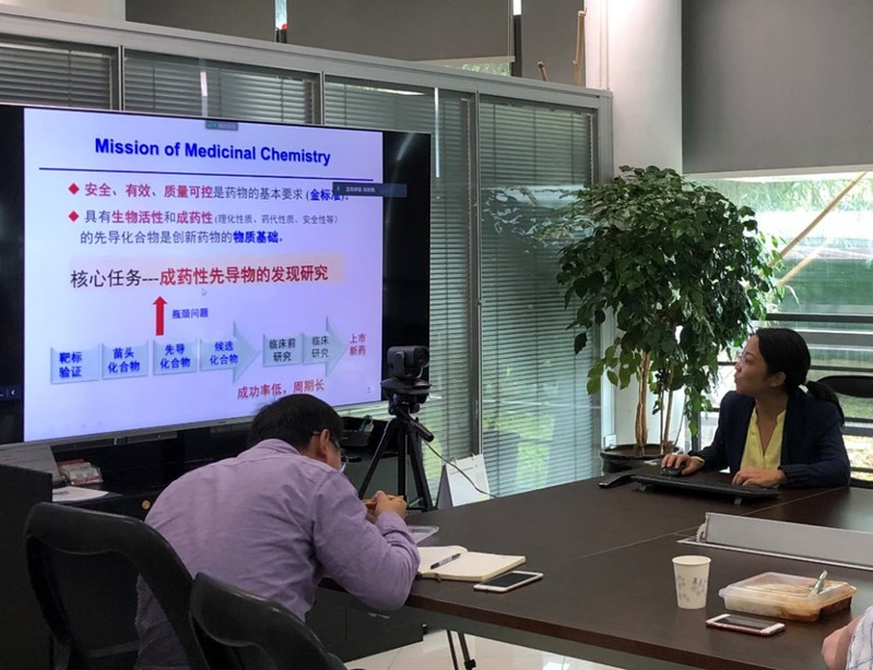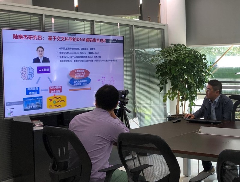 的陆小云研究员。陆晓杰研究员分享了题为“DNA 编码化合物库在小分子药物开发的应用”的研究进展; 陆小云研究员则带来了题为 “克服肿瘤临床耐药的激酶抑制剂的研究” 的精彩报告。两位青年学者的学术思想和前瞻性研究引起了线上线下观众的热烈反响,与会人员就相关科学问题进行了深入的探讨与交流。李聪副院长(主持工作)对两位青年学者的报告进行了精彩点评,并对其来访表示了诚挚的谢意。