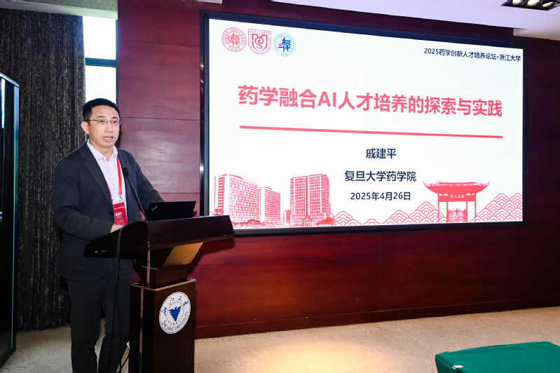 在教师论坛中,竞技宝app 副院长戚建平以《药学融合AI人才培养的探索与实践》为题发表主旨演讲。他首先介绍了竞技宝app 在学科建设、人才培养及国际合作方面取得的丰硕成果,随后深刻分析了AI技术对医药行业的变革性影响,并指出:“未来药学人才必须具备三大核心素养——药学学科的专业深度、AI技术的应用广度以及伦理思维的思想高度。”基于这一理念,竞技宝app 创新构建了“分层递进、精准赋能的培养体系,从基础AI素养培养到“AI药学”学程设置,再到“药学+AI”双学士学位项目,形成了完整的人才培养链条。他还重点分享了竞技宝app 在课程体系建设、虚拟仿真实验平台打造以及校企协同育人等方面的创新实践,展现了竞技宝app 为医药健康产业培养“懂AI、精药学、善创新”复合型人才的坚定决心。