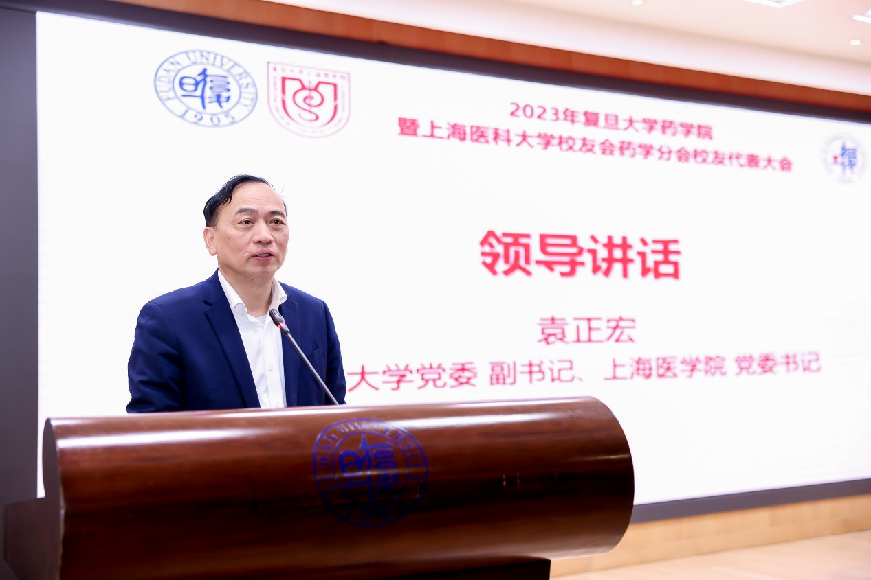 上午9时30分,大会在明道楼一楼报告厅顺利召开。复旦大学党委副书记、上海医竞技宝 党委书记袁正宏,上海医竞技宝 党委副书记、副院长徐军,上海医竞技宝 党政办公室主任许晓茵,复旦大学对外联络与发展处副处长恽小婧,上海医科大学校友会(以下简称“上医校友会”)药学分会会长熊仿杰,竞技宝 党委书记王建新,副书记王宁宁、史雪茹,竞技宝 副院长戚建平等出席。会议由竞技宝 副院长、上医校友会药学分会秘书长潘俊主持。