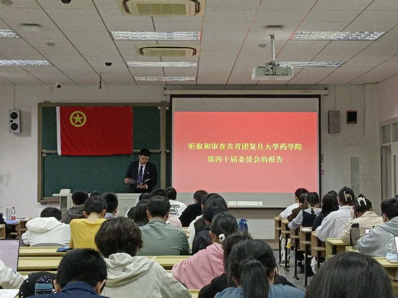 王翰麒代表共青团竞技宝 第四十届委员会向大会作题为《紧跟党走,牢记嘱托,团结带领药学青年人在新时代书写实干篇章》的工作报告。报告从团学团建、校园文化、学术科研、志愿服务等角度向全体与会代表介绍上一届团委工作情况,同时剖析了不足,最后他勉励广大团员青年以专业所长回应国家需求和社会需求,努力成长为堪当民族复兴重任的时代新人。