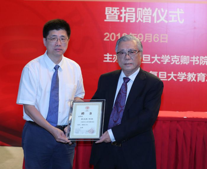2018年9月6日下午,由上海复旦大学教育发展基金会和复旦大学克卿书院联合主办的“李大鹏院士受聘复旦大学特聘书院导师暨捐赠仪式”在复旦大学经济竞技宝 大金报告厅举行。竞技宝app 74级校友、复旦大学校董、中国工程院院士、浙江中医药大学教授、浙江康莱特集团董事长李大鹏,复旦大学副校长张志勇,校长助理、本科生院常务副院长徐雷,克卿书院院长彭裕文,竞技宝 常务副院长潘俊,康莱特集团嘉宾以及竞技宝 和克卿书院师生代表200余人出席仪式。