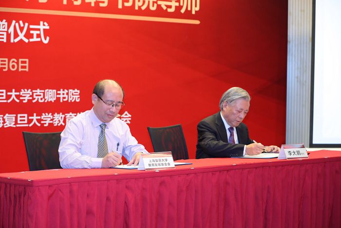 李大鹏院士和张志勇副校长在仪式上共同签署了捐赠协议,李院士个人将捐赠5000万元人民币,用于支持复旦大学药学学科和人才培养事业。