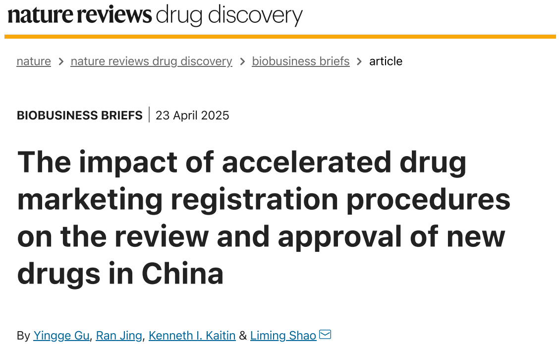 4月23日,竞技宝 教授、上海市药物研发协同创新中心主任邵黎明及其智库团队的研究文章“中国药品加快上市注册程序对新药审评审批的影响”(The impact of accelerated drug marketing registration procedures on the review and approval of new drugs in China)在Nature Reviews Drug Discovery期刊上线发表。