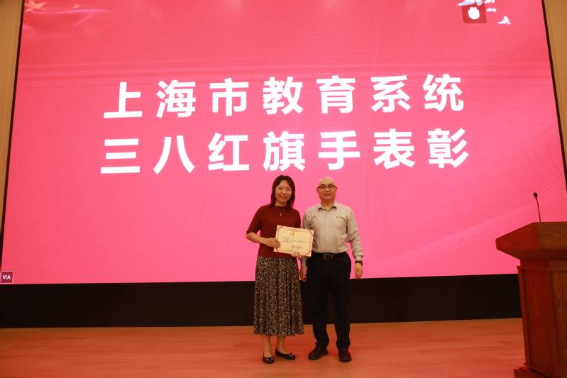 会上,党委书记王建新为黄容琴老师颁发上海市教育系统三八红旗手荣誉证书,以表彰她在科研、教学和高校党组织建设等方面取得的卓越贡献。