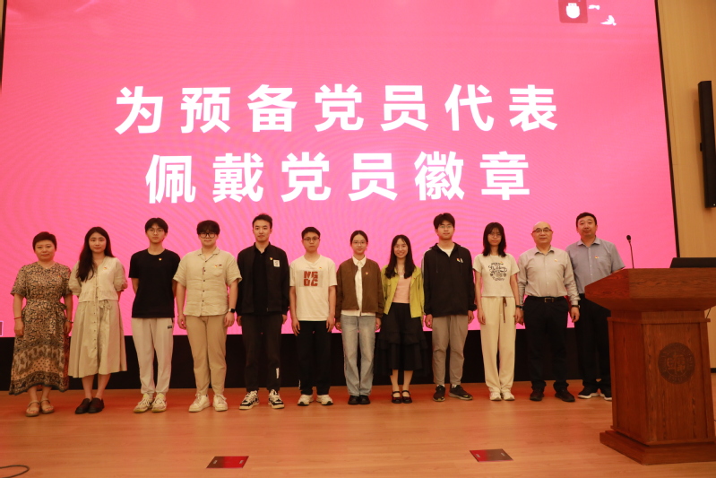 随后,党委书记王建新、副书记王盛、组织委员王洋为师生预备党员代表佩戴党徽。在王建新的领誓下,全体党员面向党旗庄严宣誓,铿锵誓言响彻会场,坚定了每一位党员的初心与信仰。
