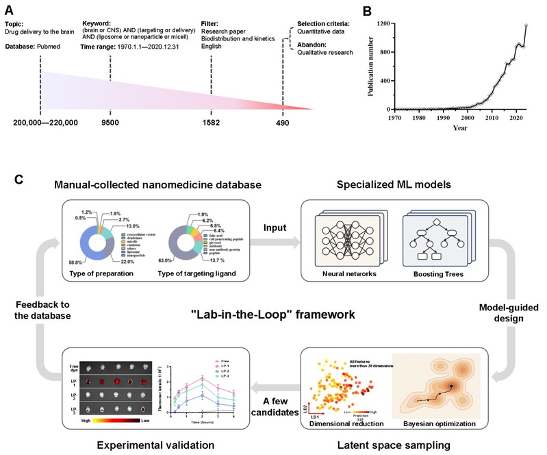 图1 Lab-in-the-loop机器学习用于脑靶向递送系统设计