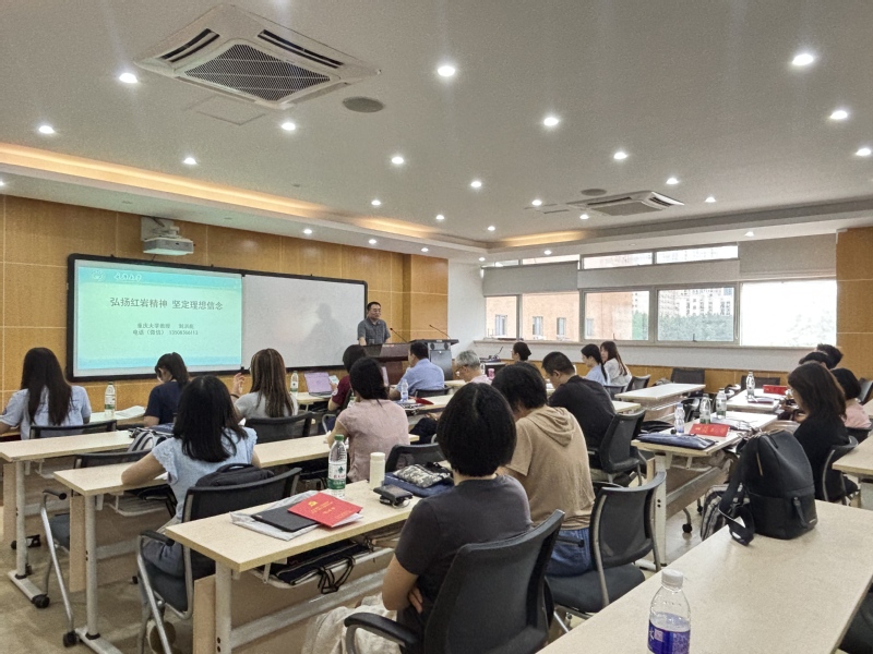 实践团首站走进重庆大学课堂。重庆市委宣讲团成员刘洪彪教授以《弘扬红岩精神 坚定理想信念》为题,系统阐释红岩精神在党的精神谱系中的核心地位。刘洪彪溯源红岩精神形成历程,强调其伴随毛泽东思想成熟而发展;剖析红岩精神四大特质——坚如磐石的理想信念、和衷共济的爱国情怀、不折不挠的凛然斗志、坚贞不屈的浩然正气;引用习近平总书记“伟大的革命实践产生伟大的革命精神”论断,为师生注入精神钙质;并结合当前正在开展的深入贯彻中央八项规定精神学习教育,阐明红岩精神的价值。会后,与会教师开展现场研讨,交流如何将红岩精神运用于工作实践,并围绕作风建设提出精简会议文件、优化办事流程等基层减负方案,让教师深耕育人。