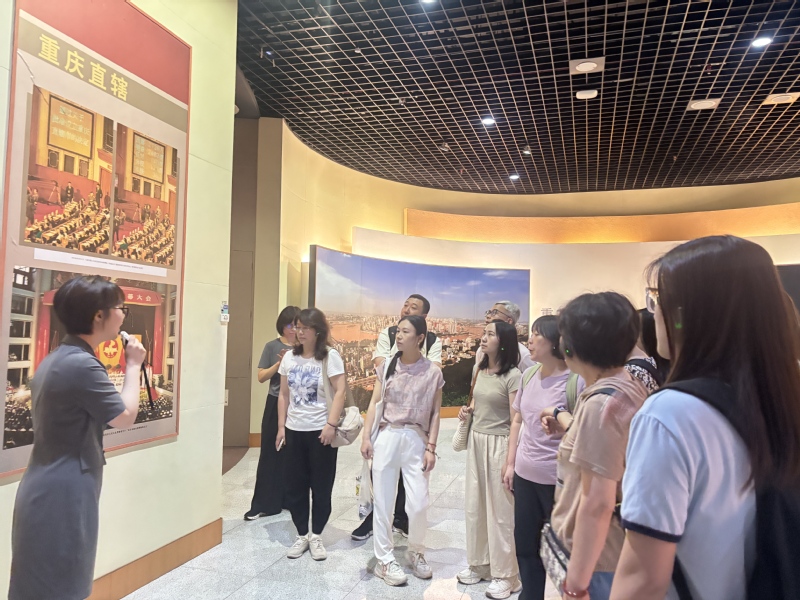 从历史烽火走向时代新篇,师生实践活动聚焦重庆高质量发展成果。三峡博物馆内,乌杨汉阙、三羊铜尊等镇馆之宝,串联起巴渝文明三千年文脉,景云碑铭文“德治教化”,诉说着古代治国智慧与文明薪传。磁器口古镇展现文旅融合新貌,传统店铺与现代商业共生共荣。沿途风景之中,跨江大桥如飞虹接连两岸,摩天楼群连接着烟火步行街,立体呈现中国式现代化的重庆实践。