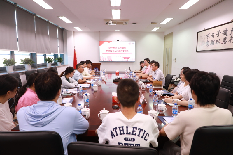 2025年8月28日,竞技宝 与苏州大学竞技宝 在复旦大学张江校区科研楼晶晖厅举行“药学拔尖人才培养交流会”。苏州大学竞技宝 药学学科综合训练中心常务副主任邓益斌、竞技宝 副院长戚建平以及两校师生代表参加座谈,会议由戚建平主持。