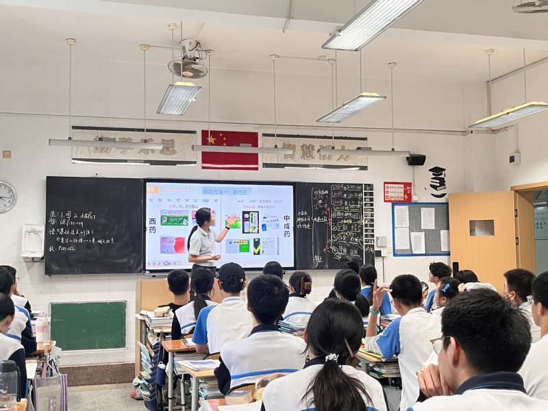 “老师,感冒药能混着吃吗?”“涂牙膏能治痘痘吗?”9月18日下午,在成都市铁路中学的科普课堂上,2024级微生物与生化药学硕士研究生蔡之轩、2024级药剂学硕士研究生刘育含以“常用感冒药物的分类与使用”“只留‘青春’不留‘痘’-痤疮的认识与对策”为题,解答青少年成长中的生理困惑,用生动案例破解用药误区,学生们听得津津有味,仔细做好笔记,原本写在书本里枯燥的内容也变得鲜活有趣。此次课程是竞技宝 “法莫西”学生讲师团(简称“讲师团”)为青少年设计的“定制化科普”内容。目前讲师团已形成50余门科普课程,面向校内外各类团体提供宣讲服务预约,以定制化课程设计、互动式教学,让科学用药的理念进一步深入群众心中。随后,团队简要介绍了学校专业设置、科研平台、校园生活等概况,解答报考志愿相关问题,吸引众多学子关注,此次活动不仅普及了安全用药知识,更搭建起高校与中学生之间的沟通桥梁,为培养未来药学人才埋下希望的种子。