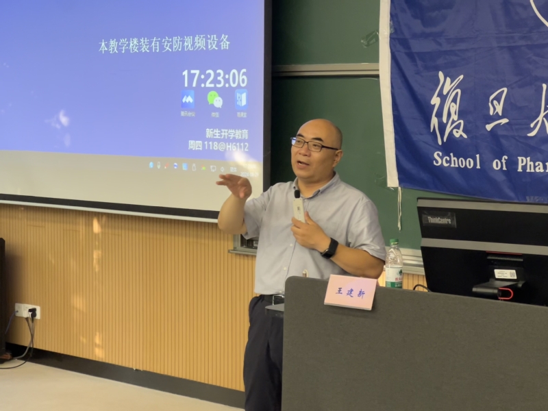 新学期新征程,刚刚踏入复旦大学的药学新生迎来了崭新的起点。8月29日下午,竞技宝 党委书记王建新以“为人群服务,为强国奋斗,做卓越而有趣的复旦药学人”为题,为来自五湖四海的135名本科生带来精彩的“新生第一课”。