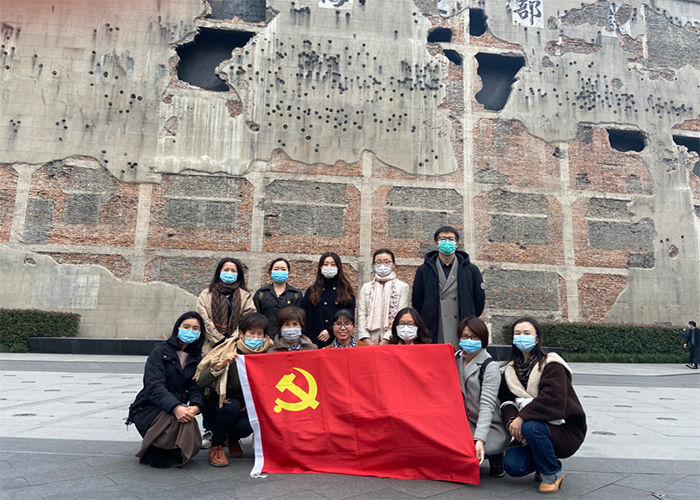 支部成员在四行仓库西墙合影留念