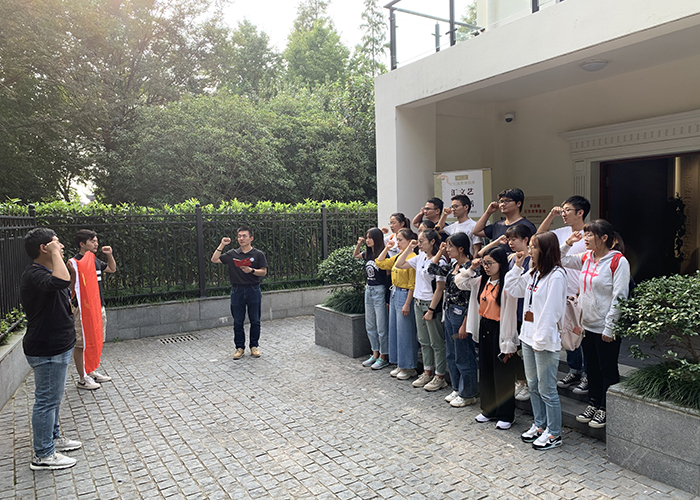 此外,学生党总支十余名新发展党员前往邹容纪念馆参观学习。展览共分为求索之路、革命号角、苏报风云、奕世流芳四个主题板块。通过学习,党员们深刻了解了革命烈士邹容先生的生平事迹,感受到他的革命激情,激励大家不忘初心、牢记使命,为理想信念奋斗终生。参观后,在学生党总支孙昶领、徐旭老师的带领下,新发展党员在邹容纪念馆门前庄严宣誓,不忘初心,牢记使命。