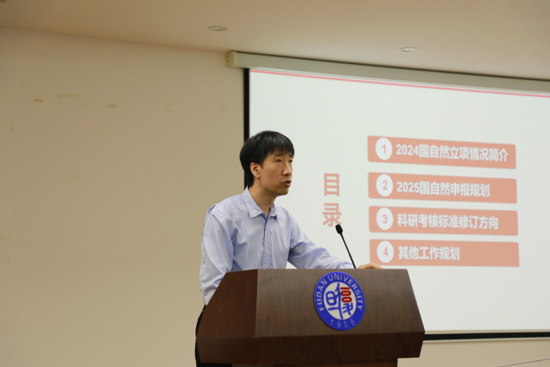 会议伊始,党委书记王建新以全院教职工政治理论学习的形式,带领大家回顾了党的二十届三中全会和2024年全国教育大会的重要精神,着重介绍了教育强国的“六大特质”和“五项重大任务”。随后,他传达了复旦大学第十六次党代会精神,涵盖“第十五次党代会以来的工作回顾”、“未来五年学校高质量发展的总体战略”及“构建一流学科体系”等,重点介绍了学校深入落实“大人才”战略,实施教师“准聘-长聘制”改革、打造一流人才方阵的计划。同时指出,竞技宝 当前面临优质师资队伍短缺、重大科研成果不足、学科交叉不够等问题,强调要抢抓机遇期,抓准改革的时度效,坚持“打头阵、当尖兵”的决心,回归“乙方心态”,践行“乐高思维”。王建新号召全体教职工齐心协力,以PI制(Principal Investigator)改革为抓手,共同推动竞技宝 的深层次改革与高质量发展。