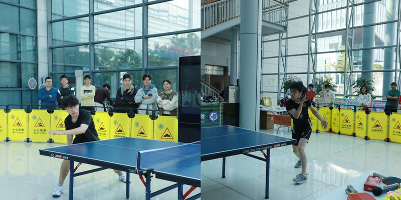 比赛共分为本科生组、研究生组和教职工组,包含男单、女单和混双三个项目。男单比赛中,选手们挥汗如雨,每一次挥拍都伴随着乒乓球清脆的撞击声,仿佛在向观众展示着他们的力量与技巧。女单赛场上,选手们则展现出了细腻与柔韧,她们轻盈的步伐和精准的击球,让人眼前一亮。混双比赛则更是将团队合作与个人实力完美结合,默契的配合和精彩的救球让大家连连称好。观众席上,每当有精彩球技展现,或是关键时刻的反击,都会引来观众的热烈反响,掌声、欢呼声、加油声此起彼伏,将比赛氛围推向了高潮。