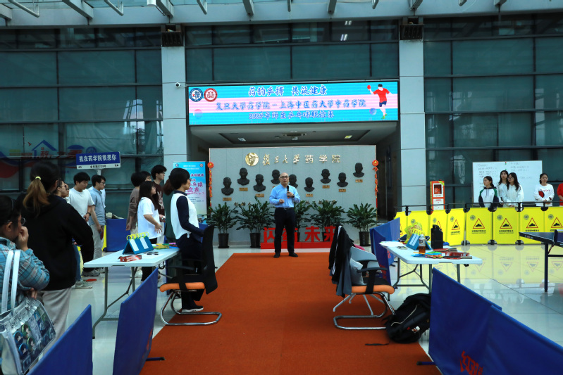 为了弘扬体育精神,倡导健康生活,增进两院师生联系互动,为乒乓球爱好者提供切磋球技、展示自我、交流互动的平台,10月23日下午,竞技宝 与上海中医药大学中竞技宝 2024年师生乒乓球联谊赛在竞技宝 科研楼大厅隆重举行,上海中医药大学中竞技宝 党委书记车荣华、党委副书记陆婧、工会主席吴靳荣,竞技宝 党委书记王建新、副书记王盛、工会主席董继斌、体育委员陈键及双方师生运动员等40余人参加,活动由竞技宝 党委副书记史雪茹主持。