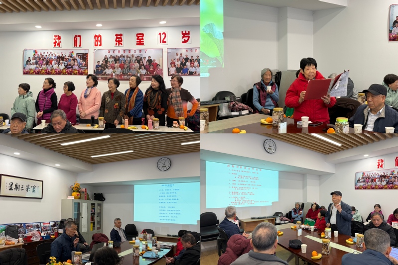 文艺表演亮点频现:女生小合唱《歌声与微笑》率先登场,清脆歌声与昂扬神情瞬间点燃欢乐氛围;周芳明老师带来原创诗歌《星期三茶室迎新年》,字句间满含对茶室岁月的眷恋与老友深情,引发全场共鸣;佟莱阁老师唱响《走进新时代》,用歌声赞颂祖国发展,自豪之情溢于言表;邓晓林老师朗诵《告别》,铿锵顿挫、饱含对革命先辈的崇敬,令人动容。