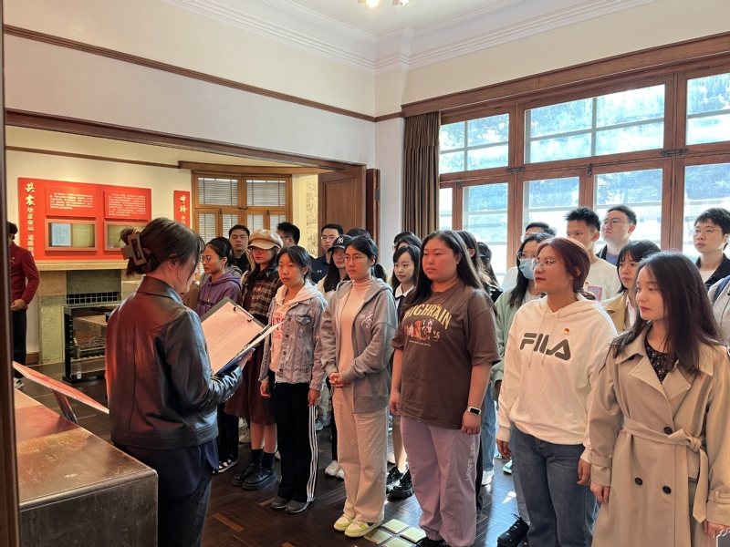 最后,预备党员同志们在“星火”党员志愿服务队副队长、竞技宝 2022级硕士生董美辰的带领下参观陈望道旧居,共同探索《共产党宣言》的故事,寻求信仰的源泉、真理的力量。
