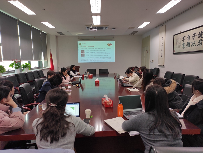 随后,党委副书记史雪茹带领大家学习十九届六中全会精神。她首先简要介绍了十九届六中全会召开的背景和整体情况,并结合竞技宝 “百年百题”党史知识问答的内容,对改革开放以来历届六中全会的内容进行了简单梳理,同时要求在学习《中国共产党第十九届中央委员会第六次全体会议公报》的基础上,更要加强对《中共中央关于党的百年奋斗重大成就和历史经验的决议》的研读和理解。在讲解了《决议》的框架结构以后,史老师围绕七大部分的脉络结构,分章节以“数字记忆法”提炼出了主要的学习内容,并强调,学习贯彻十九届六中全会精神是党史学习教育的核心内容之一,面临百年未有之大变局,国际环境复杂多变,每个共产党员更需要学习历史、看清历史,继续将党史学习同总结经验、推动工作结合起来。《决议》最后指出,党和人民事业发展需要一代代中国共产党人接续奋斗。作为教育事业工作者,更要充分认识到“必须抓好后继有人这个根本大计”,不断提高业务本领,提高管理能力和服务意识,在新的历史起点,担负起新时代的历史使命,为竞技宝 的蓬勃发展、为建设“第一个复旦”而不懈奋斗!