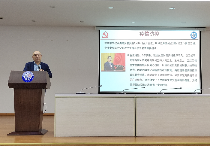 首先,王建新书记带领学习中央和上海市委关于疫情防控工作的最新指示精神,介绍了当前疫情形势和学校疫情防控政策等内容,强调竞技宝 将按照学校要求做好常态化校园防控工作,全面恢复线下教育教学,统筹疫情防控与工作发展。新学期要全覆盖、立体化精准开展系列教育活动,持续开展导师关爱行动,讲好“开学第一堂课”,提振信心、凝聚人心。随后,王书记带领学习习近平总书记在中央政治局第三次集体学习时的重要讲话精神,强调要深入学习领会总书记关于加强基础研究的重要论述,把党中央关于科技创新的一系列战略部署落到实处,坚持“四个面向”,坚持目标导向和自由探索“两条腿走路”,不断提升创新能力,努力在生物医药领域发挥创新引领作用。最后,王书记从党建工作、科研工作、教学工作、学生工作和行政工作五个方面介绍了竞技宝 2023年度的工作计划,并强调要以平台建设为抓手,以战略需求为导向,以学科优势为基础,积极开展“有组织的科研”,切实提升研究水平,推动一流药学学科建设,整体性推进竞技宝 各项事业蓬勃发展!