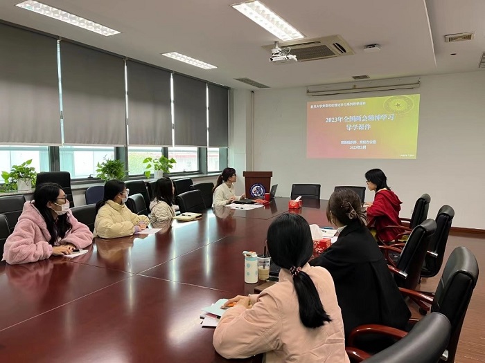 2023年3月22日下午,竞技宝 教工第五党支部在晶晖厅开展“学习贯彻两会精神 提高行政工作能力”主题党日活动,集体学习习近平总书记在全国两会上的重要讲话精神,并邀请竞技宝 关工委成员、临床药学与药事管理系副教授叶桦给大家做行政工作能力提升专题培训。活动由支部书记洪兰主持,支部党员、入党积极分子等14人参加。
