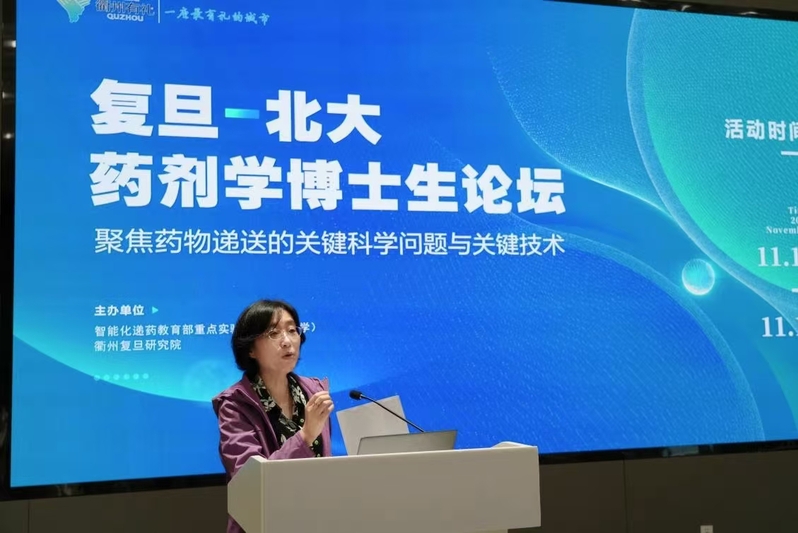 11月17日,首届复旦-北大药剂学博士生论坛在浙江衢州成功举办。本届论坛由智能化递药教育部重点实验室(复旦大学)、分子药剂学与新释药系统北京市重点实验室(北京大学)与衢州复旦研究院联合举办。会议以“药物递送关键科学问题与关键技术问题”为主题,旨在激发药剂学博士研究生的原始创新活力、推进一流学科建设、培养研究型拔尖人才、促进科技转化水平。本次论坛汇聚了来自复旦大学和北京大学的优秀药剂学博士研究生、药剂学领域的专家学者和青年教师,共计50余人。