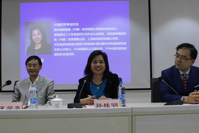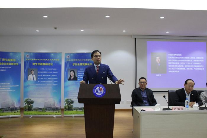 聘任仪式后,五位导师分别围绕企业对药学人才的期望和培养、药学生的创新与坚持等话题做了精彩发言并与在场学生互动交流。其中,81级校友、延安药业集团董事长王学亮提到了两种人才——专业型人才和复合型人才,并就如何成为一名复合型人才发表了自己的见解;85级校友、BI(中国)投资有限公司质量合规负责人孙桂明分享了在职业生涯甚至在人生道路上所需要具备的三种能力---团队协作能力、学习能力以及责任心;“跨界需要勇气和决断,跨界的人生也一样精彩。”88级药理专业毕业现在从事管理工作的上海市胸科医院党委书记郑宁说:“无论是跨界还是坚守本行,都要做好自己的本职工作。”致力于生物医药领域的90级校友、奕安济世生物药业创始人赵奕宁提到自己的梦想就是无论耗费几年还是几十年,他希望他和他的团队研制的药物能够经过临床实验真正用到病人身上,解除病痛。他提出了“闯和创”,敢闯以及创新,为竞技宝 的学弟学妹们今后的生涯道路发展提供了宝贵的意见;91级校友、醴泽资本管理合伙人叶崴涛围绕“理想、行动、坚持”讲述了他从毕业初的彷徨到逐步看清自己的方向,一直走到现在的人生经历。他说,“理想就是火焰,我们要做的就是始终保有心中的火焰,生生不息”。