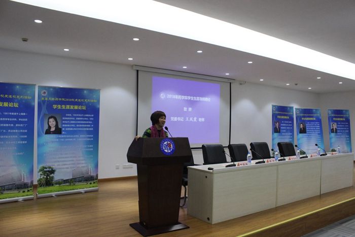 为适应药学人才培养的新形势和新要求,联动校友开展生涯教育,10月19日下午,“校友协同 助力生涯”药学生涯论坛暨2018年竞技宝 学生生涯导师聘任仪式在复旦大学张江校区食堂三楼报告厅隆重举行。来自医院、中外药企和创业投资公司等领域的五位优秀校友导师受邀出席,竞技宝 党委书记王凤霞、常务副院长潘俊、党委副书记王宁宁、学生办公室主任郁颖佳和各年级辅导员及学生八十余人参加了本次活动。