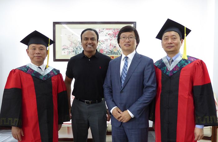 2016年6月23日上午,王明伟院长和陆伟跃书记在竞技宝 2016届学生毕业典礼活动后会晤了“德济奖学金”基金会代表、美国西部健康科学大学竞技宝 副教授王竞华博士和执行副院长Sunil Prabhu教授,感谢“德济奖学金”基金会长期以来对竞技宝 人才培养工作的支持,本年度“德济奖学金”的获得者柯梦晶同学参加了会晤。继后,陆伟跃书记和王建新副院长向来宾介绍了竞技宝 目前概况、带领他们参观了智能化递药教育部重点实验室、仪器测试中心、动物实验中心和计算机辅助设计药物技术平台,给宾客留下了深刻而又美好的印象。同时宾主也探讨了两院在人才培养方面合作的可能性。
