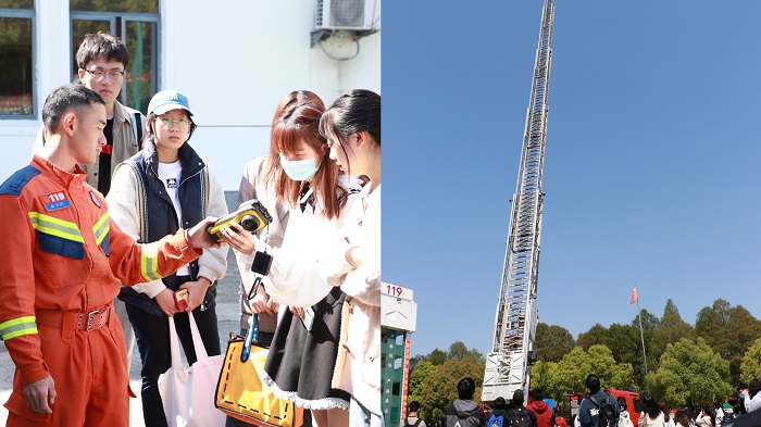 随后,学员们参观了消防救援站。消防指战员们向同学们详细介绍了各类消防车的功能及用途,讲解其配备的各种消防器材,并进行操作示范。同学们在参观中感受到了新时代背景下的全心全意为人民服务的精神,打破了对消防员的刻板印象,对新时代不同主体角度下的中国梦有了更深切的体悟。