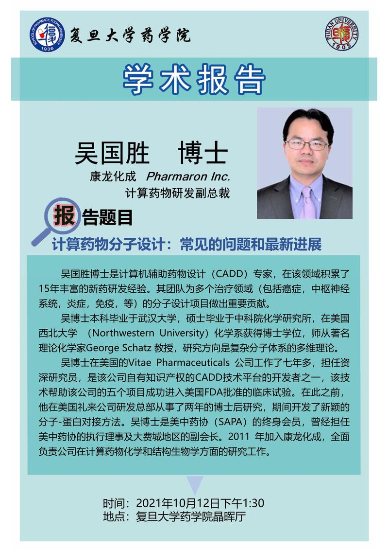 欢迎参加计算药物分子设计:常见的问题和最新进展讲座