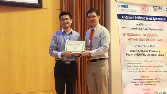 图1:李玉彬在AAPS-NUS大会上做英文报告并获得“优秀大会报告奖”