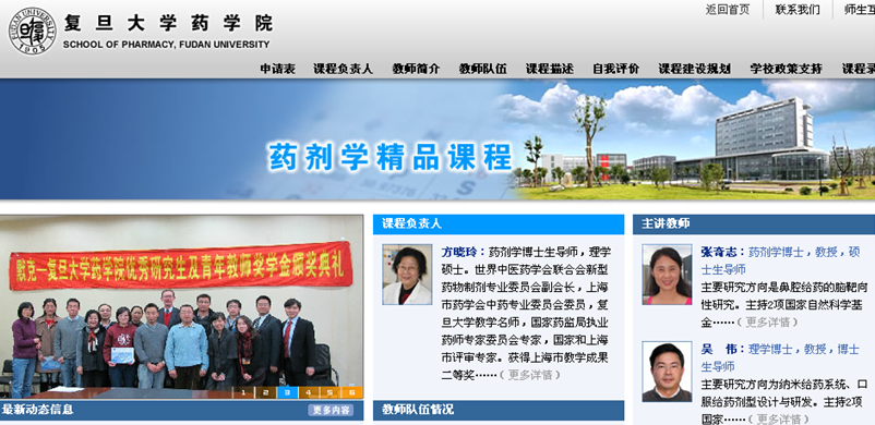作为药学专业的主干课程,复旦大学药剂学科从创建之初(1936年)就非常重视《药剂学》的教学。秉承严谨求实、勇于创新的优良作风、授人以渔的教育理念,在老一辈药剂学家、国内知名的教学名师奚念朱教授、裴元英教授等的言传身教下,药剂学科形成了一支教学水平高、科研实力强的教学师资队伍,新一代药剂学教师不断从教学理念、方法、手段、模式上对《药剂学》课程进行改革,注重学生全面素质、创新意识和实践能力的培养,以促进高级医药科技人才的培养。