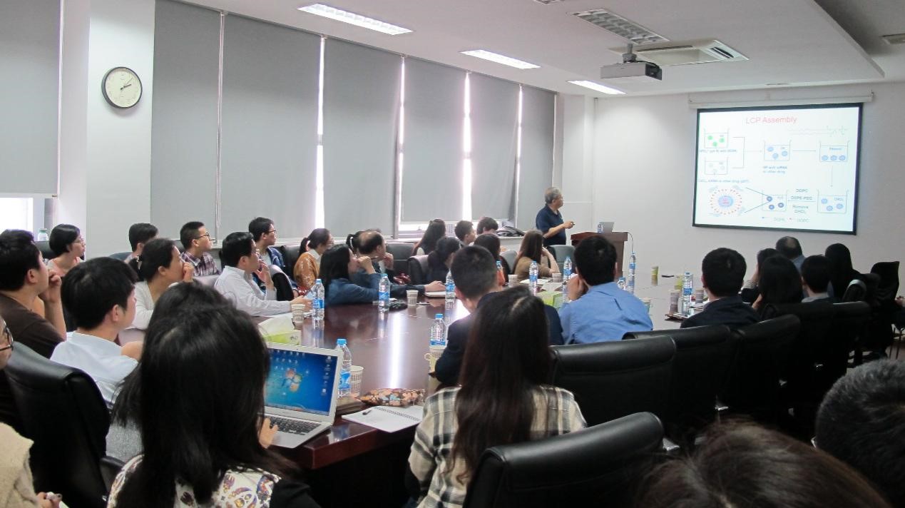3)2016年5月11日,竞技宝 药剂教研室邀请北卡罗来纳州大学Eshelman 竞技宝 黄力夫教授,在复旦大学张江校区进行了一场题为“Nanoparticle delivery of drugs and genes to desmoplastic tumors”的学术报告。黄教授用生动风趣的演讲方式,向广大师生介绍了关于基因纳米载体在肿瘤和肝脏靶向递药中的最新研究进展和应用前景,并以其丰富的专业知识与经验,解答了师生们的提问,带给我们许多新的研究理念与思路。