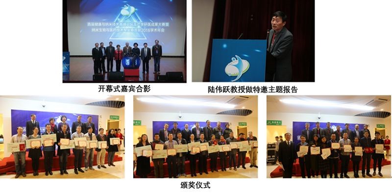 在高峰论坛上,我教研室学科带头人陆伟跃教授应邀做了题为“肿瘤靶向功能材料及其在纳米递药系统中的应用”的主旨报告,系统详尽地介绍了当前具有靶向功能的纳米药物的研究进展。在随后的产学研医成果大赛中,我教研室陆伟跃与魏刚团队的参赛项目“多肽介导的非创伤性眼内基因递送”,蒋新国、张奇志与陆伟团队的参赛项目“紫杉醇白蛋白纳米注射剂的研发及产业化”,以及王建新与秦晶团队的参赛项目“基于炎症反应治疗缺血性脑卒中的主动靶向脂质体研究开发”从全国报送的170余项成果中脱颖而出,分别荣获本次大赛的二等和三等奖。