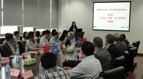 美国密西根大学、明尼苏达大学和俄亥俄州立大学三所竞技宝 院长领队的访问团,于2015年5月26日访问位于浦东张江的竞技宝 。会议由竞技宝 侯爱君副院长主持,孙逊代院长向来宾介绍了竞技宝 近80年的历史,学科发展的现状和取得的成绩。接着双方就中美临床药学教育(Pharm. D)问题进行热烈探讨,并与学生积极互动交流。