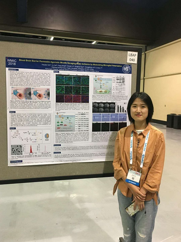2018年9月11号到9月15号,李聪教授和博士研究生高西辉、硕士研究生革晓皎赴美国西雅图参加2018年世界分子影像大会(WMIC)。实验室入围大会Our Lab展示活动,博士生曾峰经大会评选获得“Student Travel Stipend”奖项,并就题为“Image-Guided Chemotherapy by Tuning Blood Brain Barrier Permeability in Glioma Margins”和“Bespoke Ceria Nanoparticles Show a Neuroprotective Effect by Modulating Phenotypic polarization of Microglia”工作进行壁报展示,硕士生革晓皎就题为“Blood Brain Barrier Permeable Agonistic Micelle Savaging Brain Ischemia by Modulating Microglial Polarization”工作进行壁报展示。
