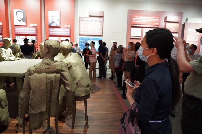 党员们首先参观了中国共产党第一次全国代表大会会址纪念馆的“伟大的开端——中国共产党创建历史陈列”展览,跟随讲解员重温百年党史。《新青年》“马克思主义”研究专号,72个版本的《共产党宣言》,《共产党》月刊创刊号,李大钊使用过的打字机,上海工人武装起义用的警笛和哨子,陈赓夫人王根英烈士狱中绣的书包,贺绿汀《游击队歌》原谱,李白烈士修理电台的工具……百年历史画卷在每个人心中缓缓展开。
