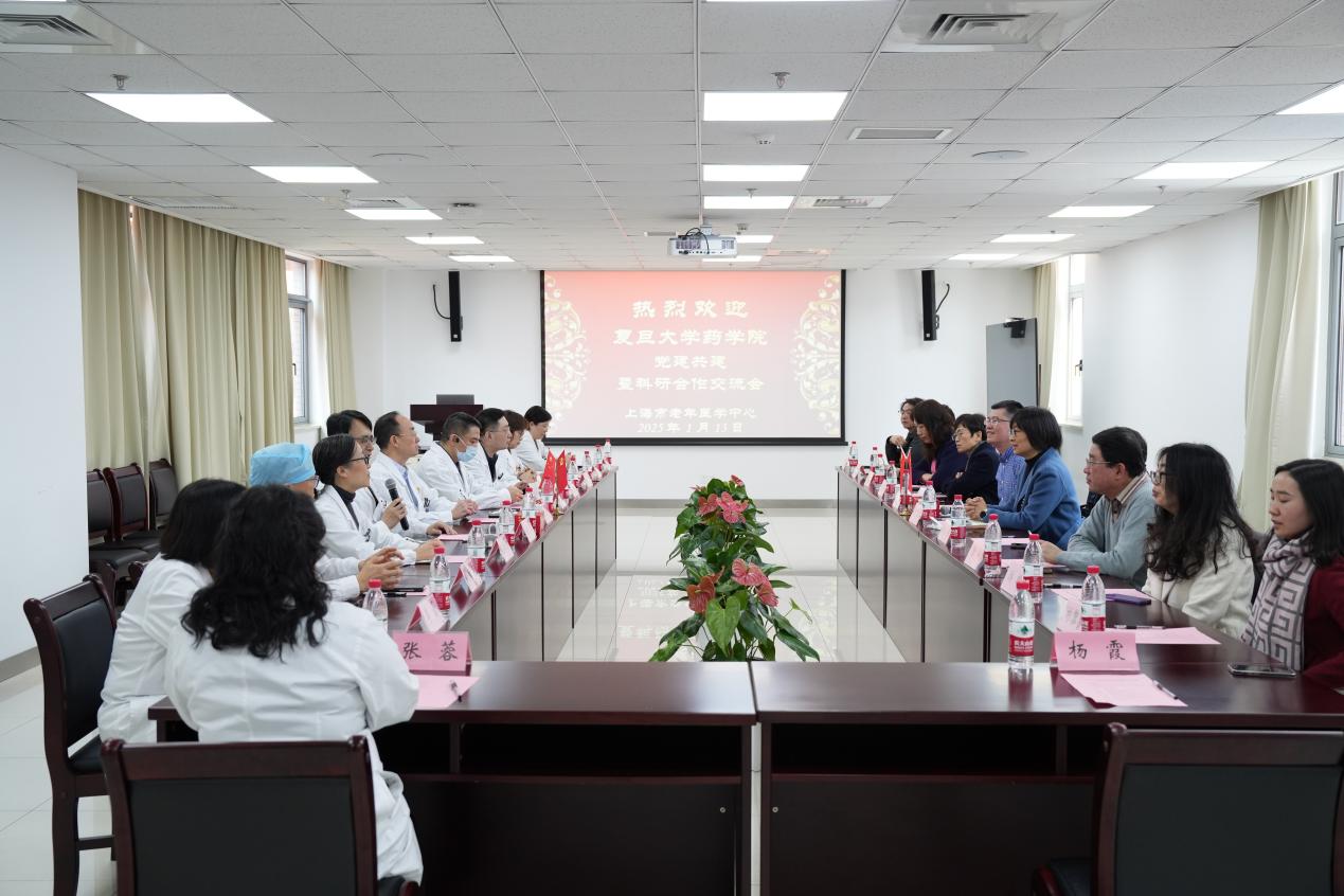 为加强党建合作,深化科研领域交流,携手推动医研创新发展,2025年1月13日上午,竞技宝 院长李聪、党委副书记史雪茹、药理学系主任沈晓燕、临床药学与药事管理学系主任相小强,及各系/中心骨干教师代表赴上海市老年医学中心(简称老年医学中心)开展党建共建暨科研合作交流。会议在老年医学中心二号楼五楼举行,老年医学中心党委书记阎作勤、常务副院长孙湛、副院长方浩及各科室主任出席会议。会议由方浩副院长主持。