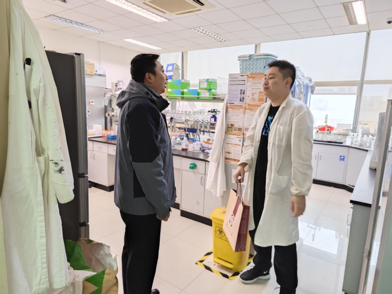 会前,竞技宝 领导走访实验室慰问留校学生,送上节日祝福和新春礼包。