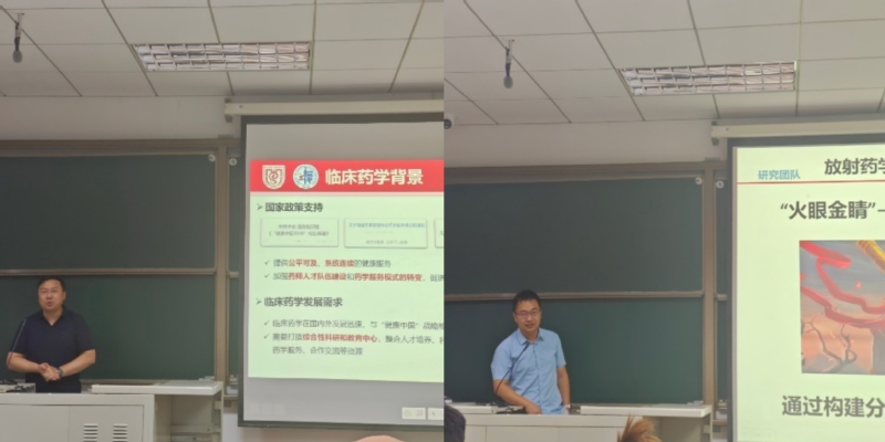 临床药学与药事管理学系主任相小强从背景、发展趋势、发展现状、临床药学中心简介、对国民经济和社会发展的作用等多个角度带领大家一瞰学系概况。放射药学与分子影像中心主任王璐从新药研发、疾病诊断、预后评估和制剂研究四个方向介绍学系研究内容并佐以荧光探针精准切除卵巢肿瘤组织、正电子发射型计算机断层显像等例子进一步帮助大家理解研究的主要内容。