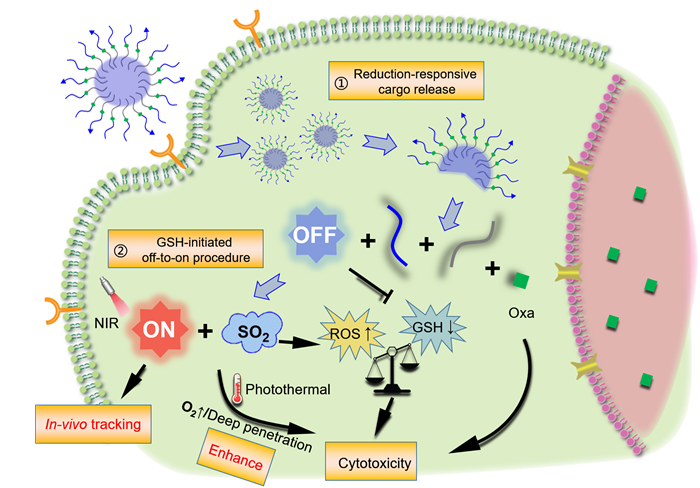 针对上述问题,近期竞技宝 蒋晨课题组遵循CRC-PM基本治疗原则,从肿瘤固有特征出发,综合药剂学、有机化学、材料学、影像学等手段,以分子设计为基础工具,以氧化型抗坏血酸为小分子靶向功能基团,构建了CRC-PM肿瘤靶向的固载奥沙利铂的聚合物胶束,实现GLUT1介导的药物的肿瘤富集,微环境刺激下奥沙利铂及光诊疗剂的释放和基于此的原位光热效应,实现了肿瘤病灶示踪,提高了治疗精准性,最终实现化疗增敏、药物增渗及定点热疗。