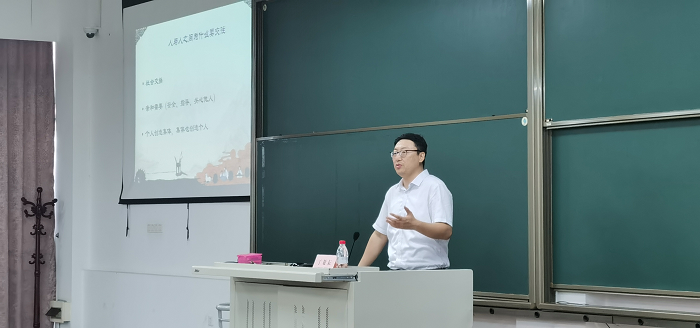 讲座伊始,丁老师通过提问的方式拉近了与同学们之间的距离,并以“人与人之间为什么要交往”这一问题引出了本场讲座的主题——如何构建和谐的人际关系。随后,丁老师分别从人际关系的构成、人际交往的心态与类型以及如何改善自己的人际场等方面展开讲述。