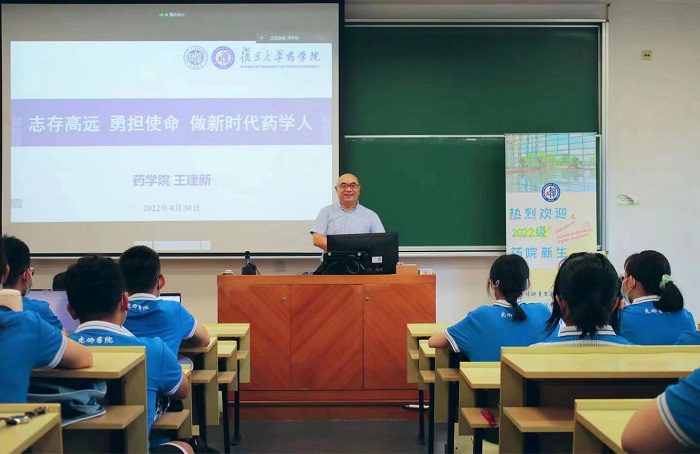 随后,王建新书记以“志存高远 勇担使命 做新时代药学人”为题,向新生们讲述了复旦竞技宝 与药学专业的历史与发展,药学事业的当下与未来。