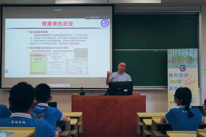 2022年8月30日上午,“闪‘药’青春,筑梦未来”竞技宝 新生第一课在HGX0103教室开讲,由竞技宝 党委书记、药剂学教授王建新老师为2022级本科生新生作题为“志存高远勇担使命做新时代药学人”的讲座。
