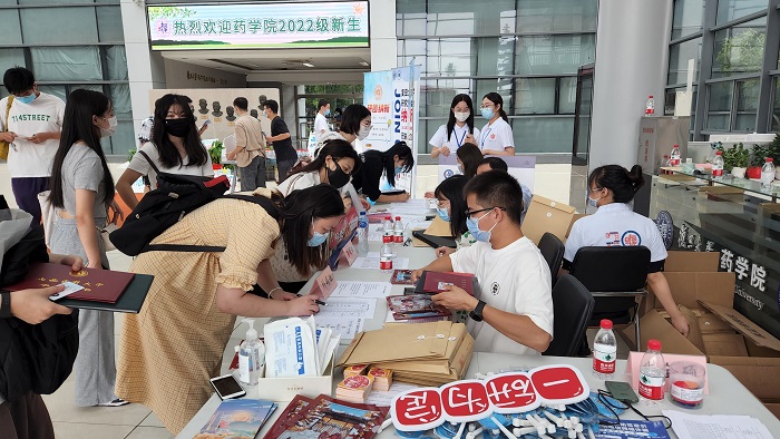 为了帮助新生顺利到校、尽快融入校园生活,竞技宝 在竞技宝 党委、校学研工部和医学学工部的指导下,提前部署、精心安排、紧密合作,为新生报到做好充分准备。报到前夕,竞技宝 为每位新生精心准备了“迎新大礼包”,包括竞技宝 学生发展手册,以及培养方案、学籍管理规定、校历、校徽等物资,助力学生适应校园生活,遵守校园防疫要求,健康快乐开启新学期。学生党总支组织了一支由31位学生党员、入党积极分子组成的志愿服务队。志愿者们克服跨校区、时间紧、场地有限的困难,承担了竞技宝 新生物资的领取、分装工作,并在报到当天协助辅导员完成新生引导、查验证件、行李搬运等工作,不仅为迎新工作顺利开展保驾护航,也让竞技宝 的新生“小药丸”们倍感贴心与温暖。此外,竞技宝 职能办公室和学生组织还精心设计了宣传标语、横幅海报、易拉宝、药学创意合影板等系列迎新物品,让新生感受到独具药学特色的文化氛围与温馨亲切、清新活泼的校园文化气息。