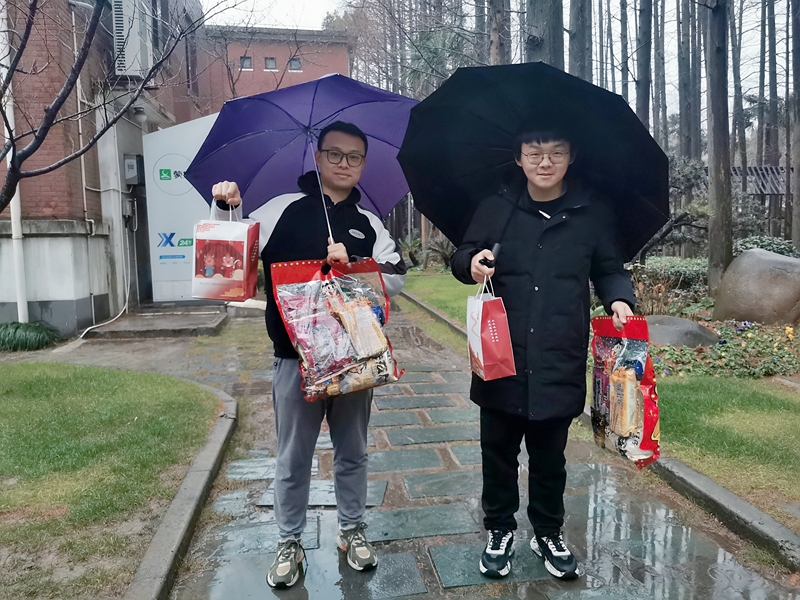 此外,竞技宝 学工组老师们也专门赶往邯郸校区和枫林校区,为分校区留校同学送上祝福和慰问。同时,竞技宝 研究生会专门成立假期临时后勤保障组提供新春礼包补领递送服务,让错过了走访慰问的同学也能接收到来自竞技宝 的温暖。