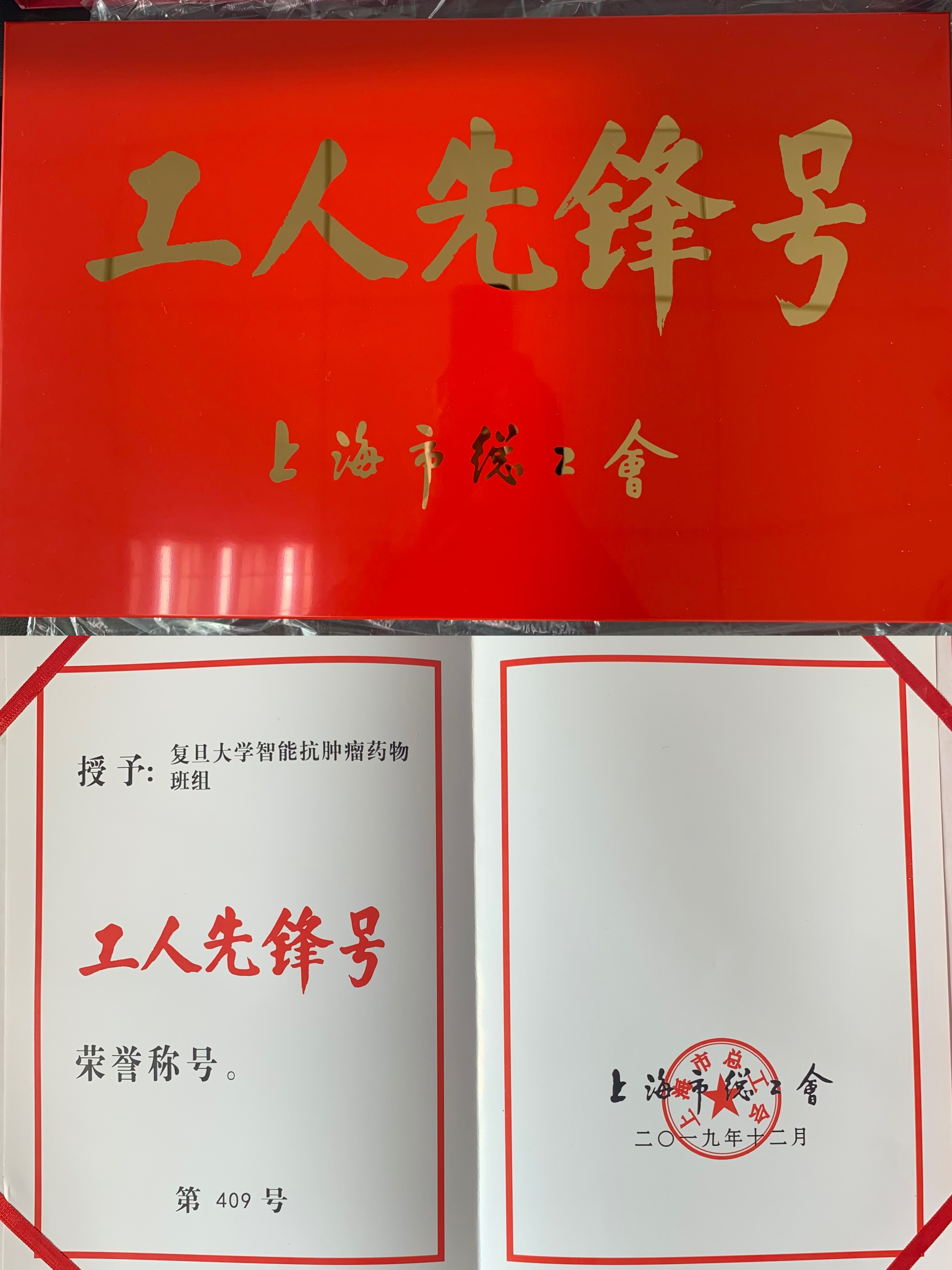 “复旦大学智能抗肿瘤药物班组”获得上海市总工会颁发的“工人先锋号”荣誉称号